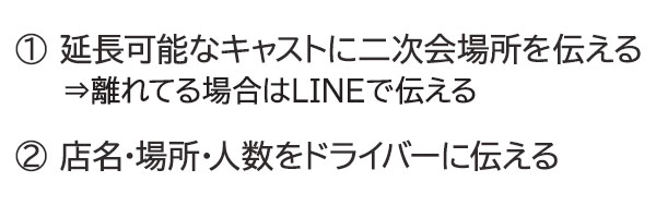 最低延長人数(2名)を利用して、リーダーともう1人のキャストだけで延長に運ぶことを禁止します。