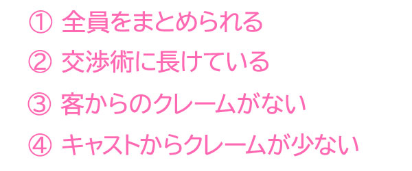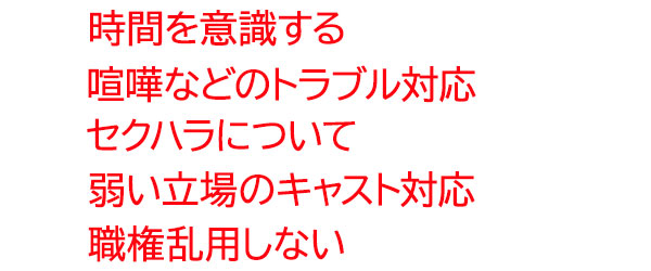 リーダーは新人や弱い立場のキャストの対応を怠ってはいけません。