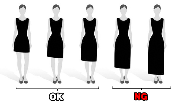 スカートは膝丈を基準とする。膝が隠れる長さはNG