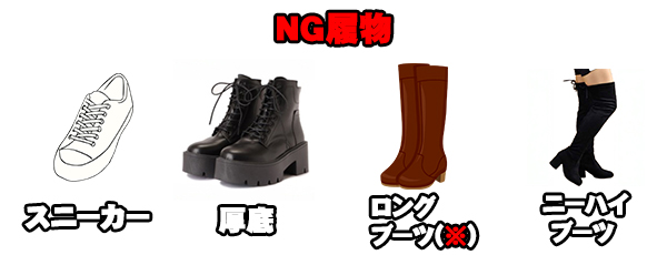 ✅極寒期(12/15~3/15) ✅ブーツ禁止の店舗以外